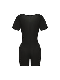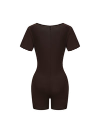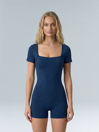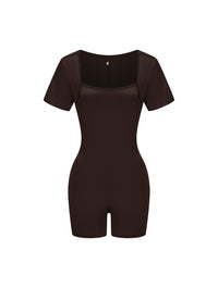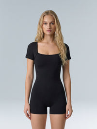 Jumpsuit mit quadratischem Ausschnitt und kurzen Ärmeln