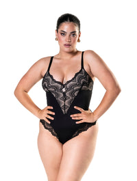 Experience the ultimate blend of functionality and style with our Half Laced Bodysuit. Featuring front lace panelling, low-back styling, and built-in slimming compression, this bodysuit perfectly contours to your unique curves while enhancing your figure. With durable shoulder buckles and stretch lace leg-openings, it offers a comfortable and customizable fit. Say goodbye to rolling with our anti-rolling effect and feel confident in any low-front or low-back styles.