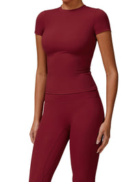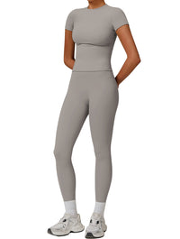 - Flattering fitted top and high-waisted leggings for a sculpted silhouette