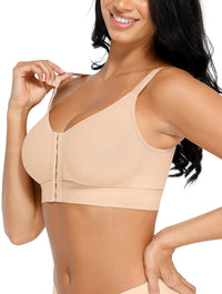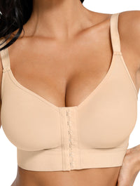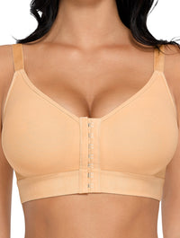 The full-coverage, front-closure design features three rows of adjustable hooks, allowing you to personalize your fit and pressure level throughout recovery. The double-layer compression fabric molds naturally to your chest, providing light shaping without underwires or padding—ideal for large busts that need secure, comfortable support without added bulk.