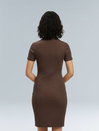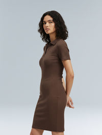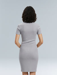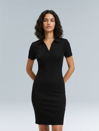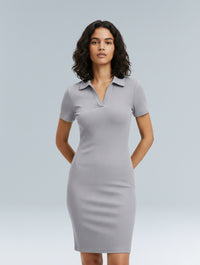 With its stretchy ribbed fabric, collared neckline, and fitted silhouette, it gives you that sleek, put-together look without ever feeling restrictive. The short sleeves and mini length make it the perfect balance of chic and casual, whether you’re running errands, heading out for brunch, or dressing it up for the evening.