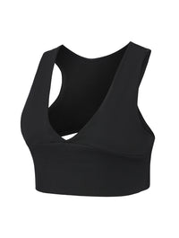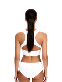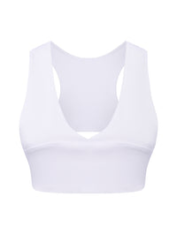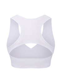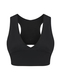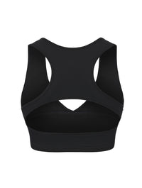 Espalda racerback con abertura abre la espalda mientras distribuye el soporte para comodidad todo el día