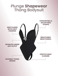 Découvrez le body shapewear Plunge, conçu pour les tenues qui exigent un soutien invisible et une silhouette sculptée. Parfait sous les décolletés plongeants, les robes dos nu ou les robes de mariée, ce body string affine, soulève et lisse sans se voir.