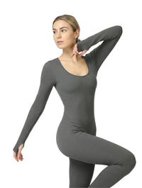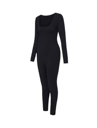Confectionnée en tissu côtelé doux et extensible, elle bouge avec vous et épouse toutes les bonnes courbes. L'encolure carrée ajoute une touche moderne et féminine, tandis que les manches longues et les jambes longueur totale la rendent polyvalente pour chaque saison. Les manches avec trous pour les pouces lui donnent un détail supplémentaire à la fois stylé et pratique.