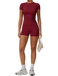 Scopri la tua nuova divisa da tempo libero – dove l'abbigliamento lounge incontra lo stile modellante. Questo set a due pezzi abbina un top aderente a maniche corte con shorts a vita alta/ultra alta realizzati in tessuto elasticizzato, soffice come una nuvola e traspirante che si muove con te. Il tessuto offre una sensazione di modellamento e levigatezza con compressione media – scolpendo delicatamente senza stringere – per quella silhouette naturale Shape Me Up.